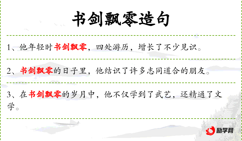- 书剑飘零:形容一个人既有文才又有武艺,但生活漂泊不定。