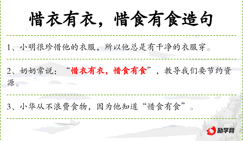 - 惜食有食:一个成语,意思是珍惜食物就会有食物吃,强调节约粮食的重要性。