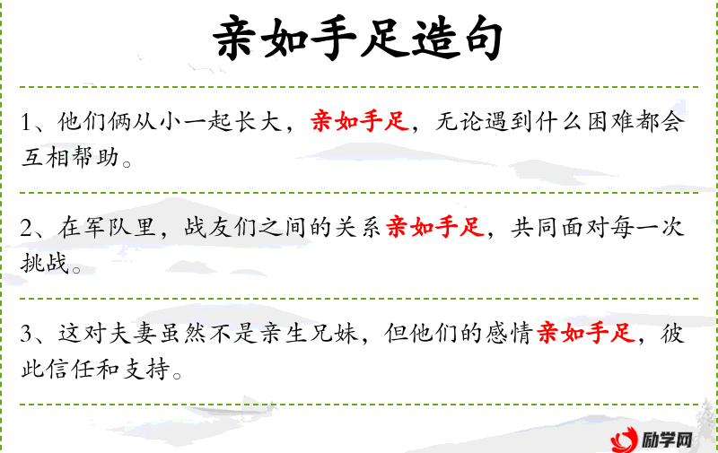 - 亲如手足:这个成语源自**传统文化,强调人与人之间的深厚情谊和紧密关系。