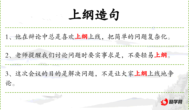 1. 【上纲上线】 指把问题提到阶级斗争和路线斗争的高度来分析。