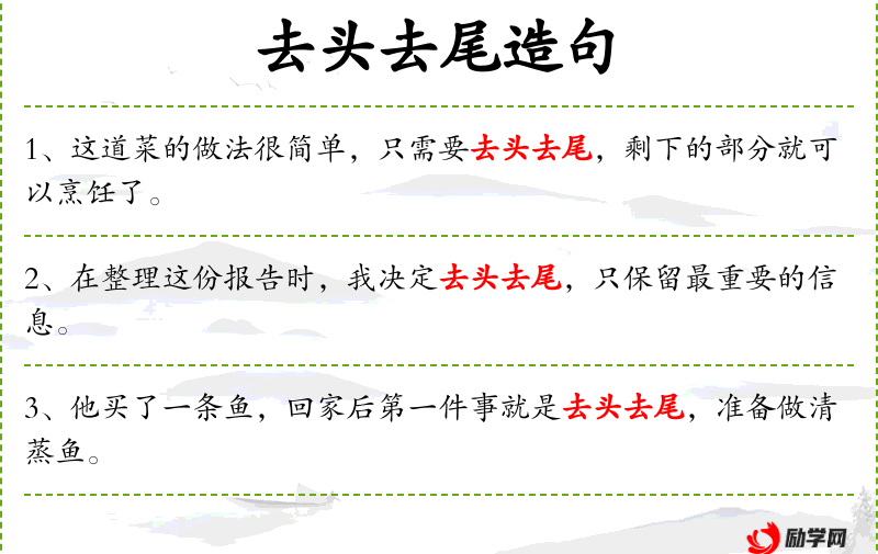 - 去头去尾:固定搭配,表示去除开头和结尾。