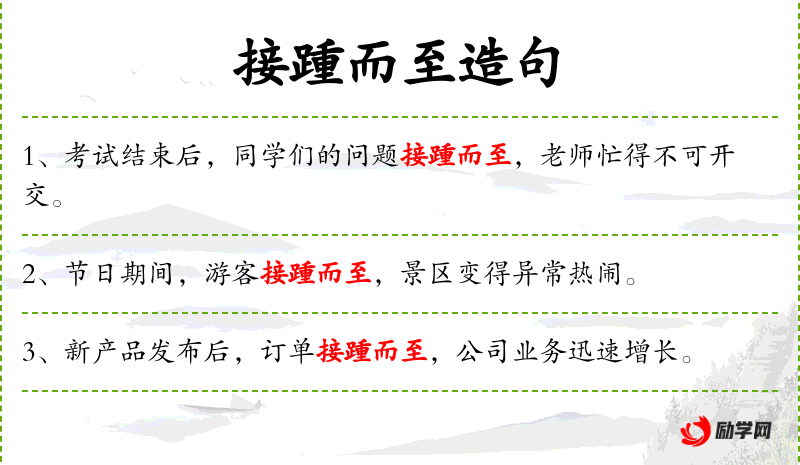 - 谓语:“接踵而至”和“满足”是句子的两个主要动作。