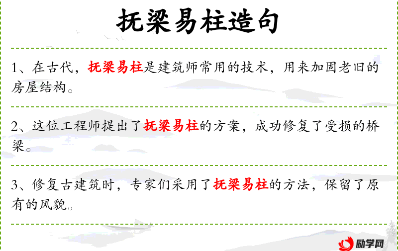 - 抚梁易柱:指在修复历史建筑时,对梁柱进行轻柔的处理和更换,以保持建筑的原貌和结构。