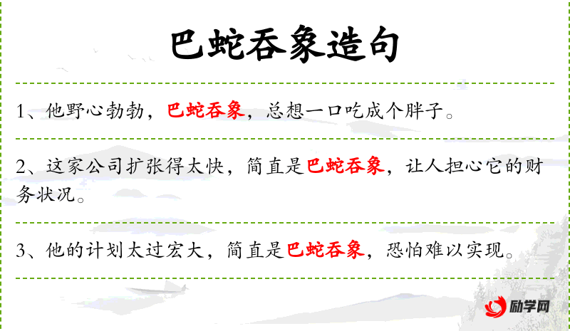 “巴蛇吞象”是一个成语,源自《山海经》,比喻不自量力。这个成语在文化中常用来警示人们不要贪心不足,要有自知之明。