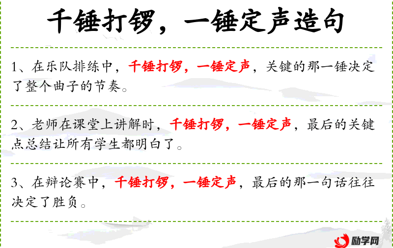 - 成语:“千锤打锣,一锤定声”源自**传统文化,比喻多次准备后的最终决定。