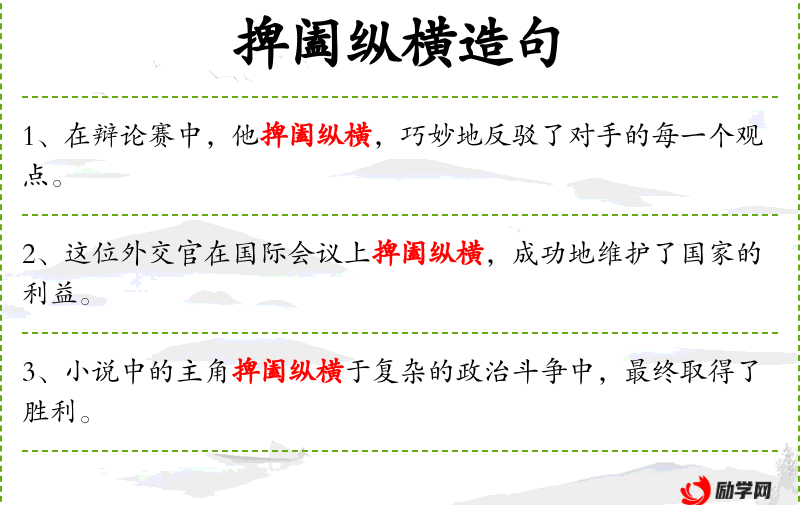 - 谓语:在比赛中捭阖纵横
