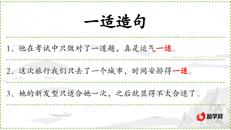 1. 【一适】 - 一度贡举或推荐; 一种快意之事; 一往; 一概适合。
