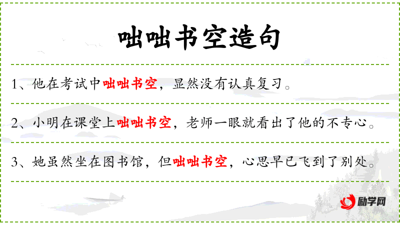 - 咄咄书空:形容人在考试中无所事事,空洞无物。