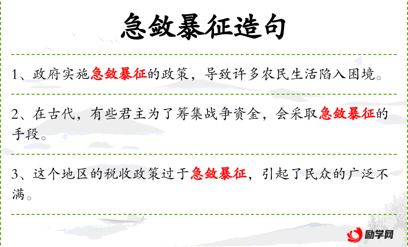 - 急敛暴征:指迅速且强制性地征收税款,通常带有负面含义。