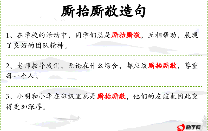 - 成语典故:这个成语来源于古代汉语,体现了古代对礼仪和尊重的重视。