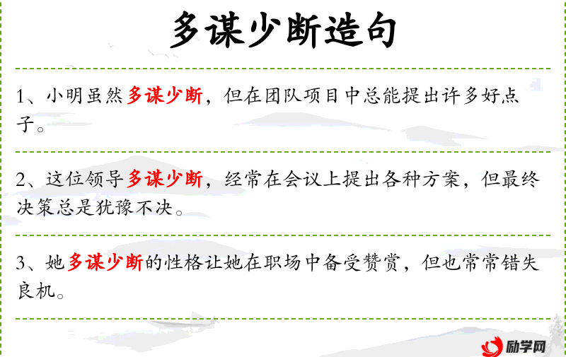 - 多谋少断:形容一个人计划周密但决策犹豫。