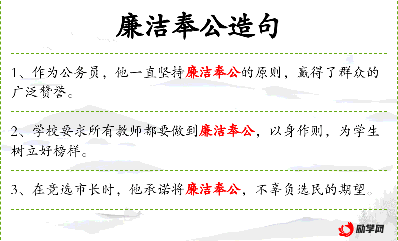 - 主语:“廉洁奉公”