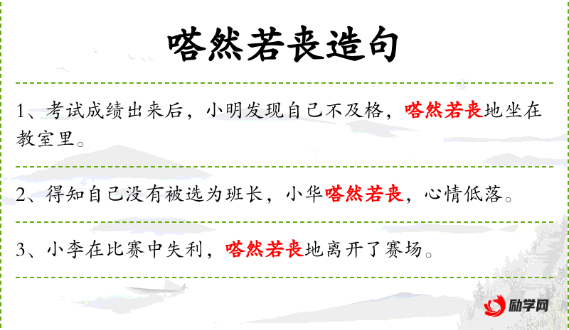 - 嗒然若丧:成语,形容心情沮丧、失落的样子。