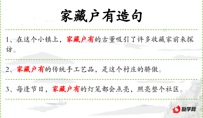 句子:“家藏户有的古书,是这个图书馆的宝贵财富。”