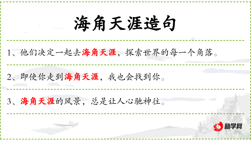 5. 【海角天涯】 形容极远的地方,或彼此相隔极远。