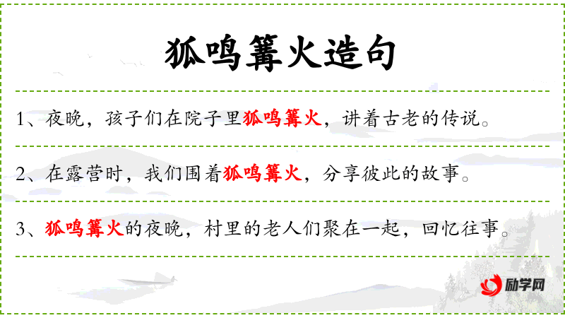 4. 【狐鸣篝火】 指起事者动员群众的措施。同“狐鸣鱼书”。