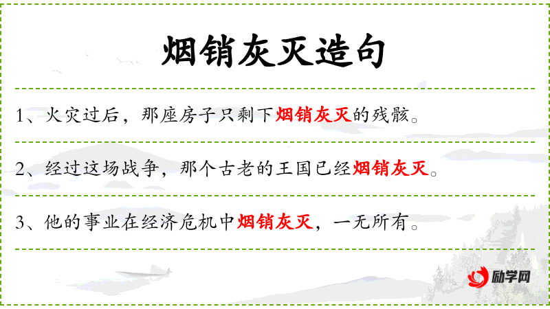 1. 【烟销灰灭】 - 比喻事物消失,不见踪迹。