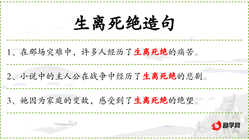 2. 【生离死绝】 - 分离好像和死者永别一样。指很难再见的离别或永久的离别。