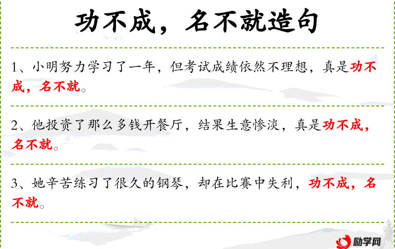 - 功不成,名不就:成语,表示努力没有得到应有的回报,名声也没有建立。