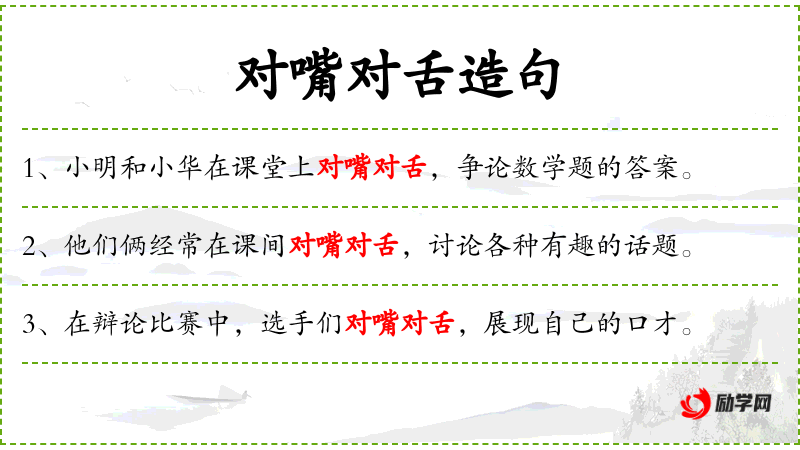 - 对嘴对舌:这个短语可能是一个地方性的表达,意思是孩子们在互相模仿、对话或争论。