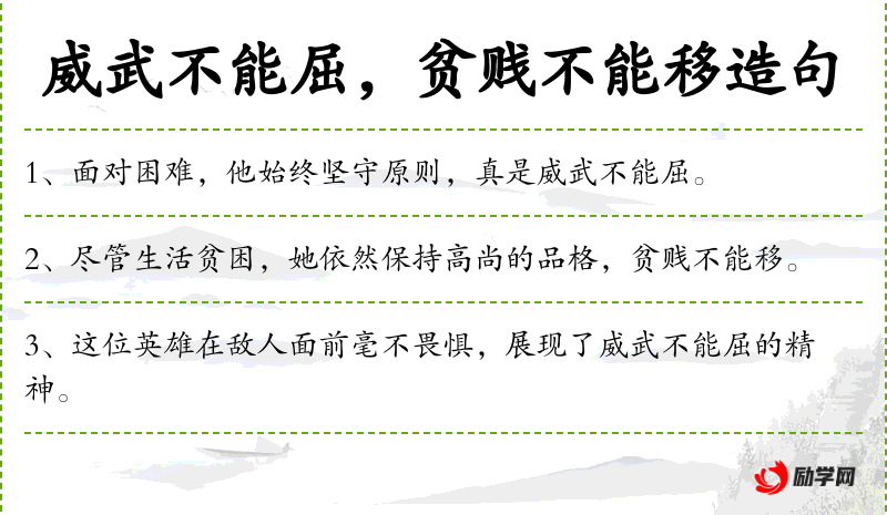 1. 【贫贱不能移】 不会因生活贫困,地位卑微而改变自己的志向。