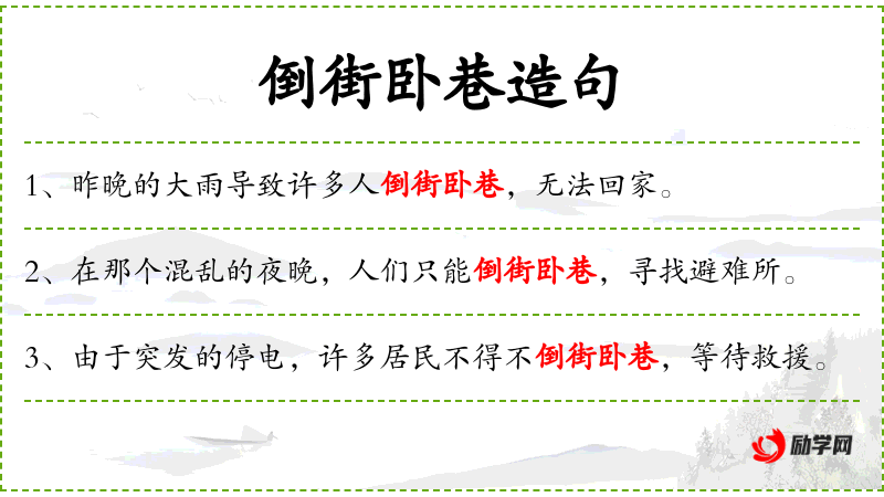 - 宾语:无明确宾语,但“倒街卧巷”可以视为谓语的补充说明。