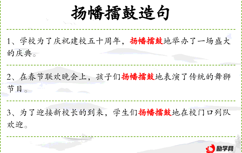 - 扬幡擂鼓:形容场面热闹,气氛热烈。
