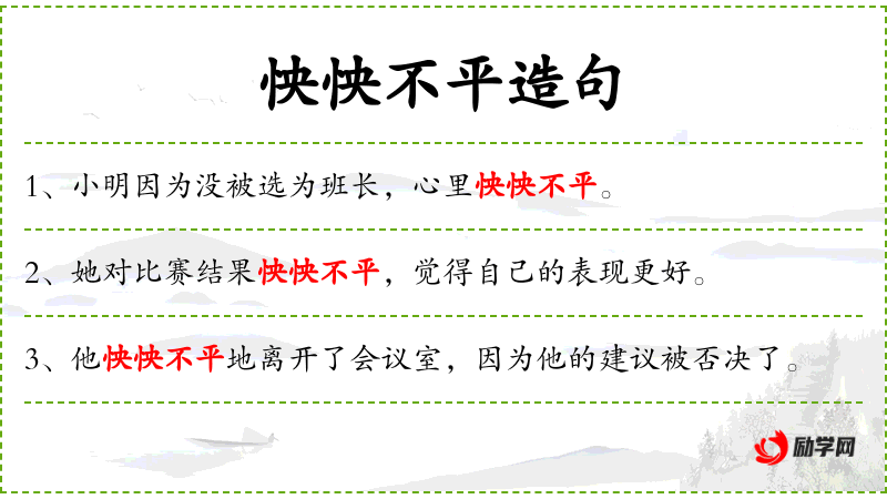 - 怏怏不平:闷闷不乐、愤愤不平