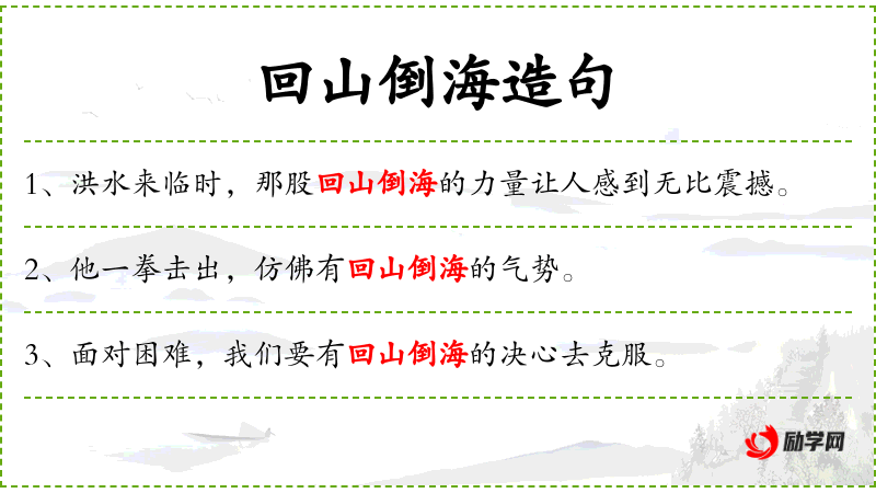 句子:“面对挑战,我们要有回山倒海的信心去迎接。”