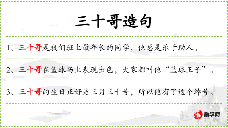 三十哥造句