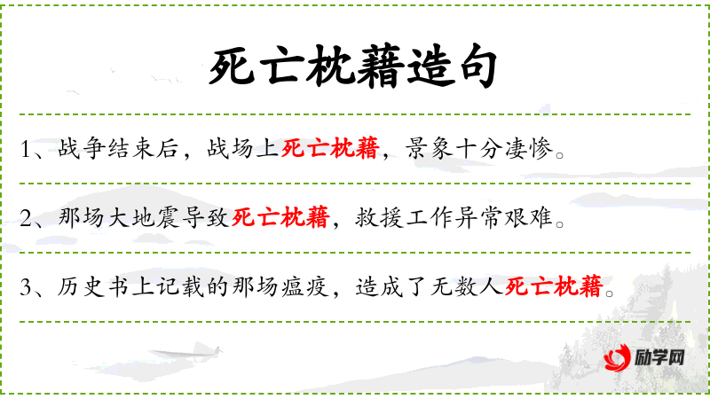 3. 【死亡枕藉】 - 枕藉:纵横相枕而卧。形容死的很多。