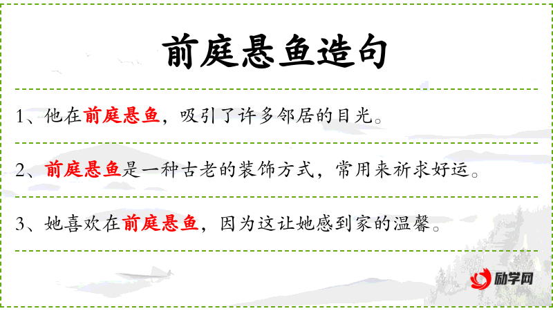 - “前庭悬鱼”可能与**传统文化中的“年年有余”(年年有鱼)有关,鱼象征着富足和盈余。