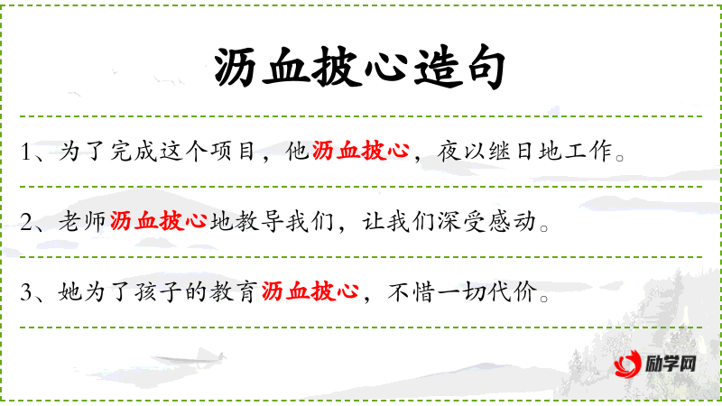 4. 【沥血披心】 比喻竭尽忠诚、恳挚的心意。同“沥血叩心”。