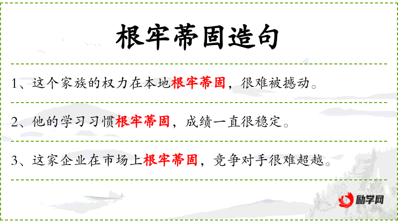 5. 【根牢蒂固】 指根基牢固。