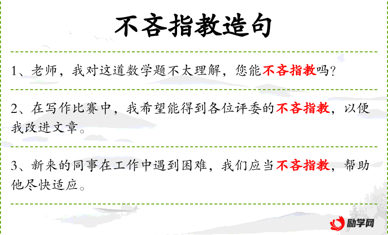 - 不吝指教:礼貌地请求别人给予指导或建议。