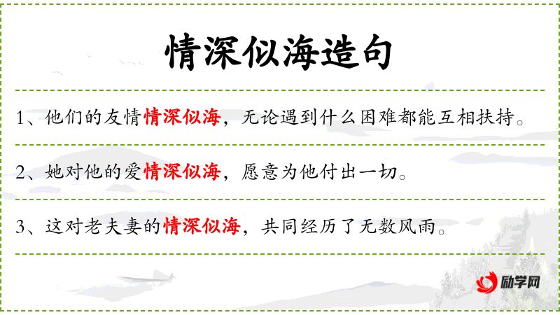 - 宾语:无直接宾语,但“深似海”和“互相帮助和支持”可以视为谓语的补充说明。