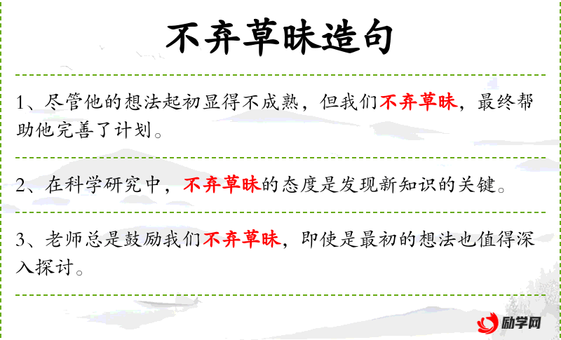 - 不弃草昧:成语,意为不放弃初期的努力或不成熟的想法。