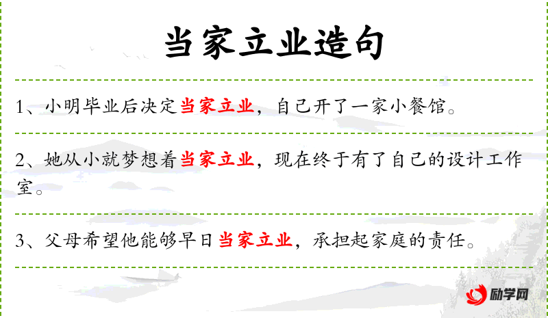 - 当家立业:成语,表示独立管理家庭或事业。
