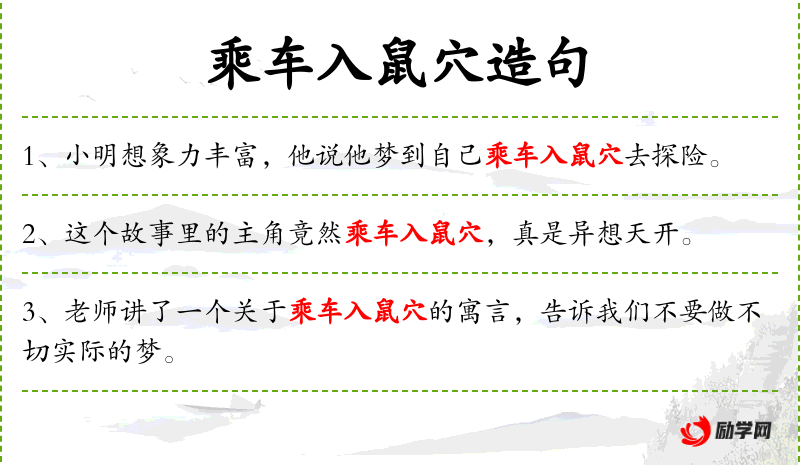 1. 【乘车入鼠穴】 坐车进入老鼠洞。比喻不合情理,无法办到的事。