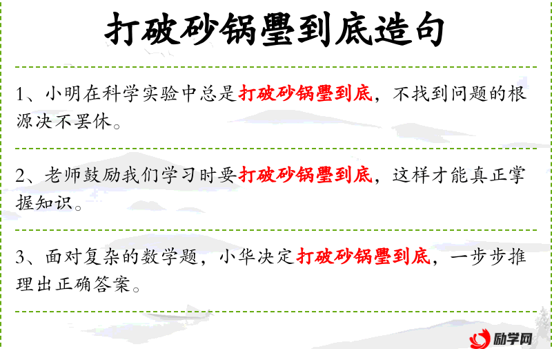 - 文化背景:成语“打破砂锅璺到底”体现了**文化中对问题彻底解决的重视。