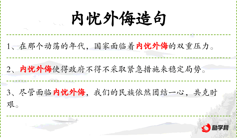 - 状语:面对内忧外侮