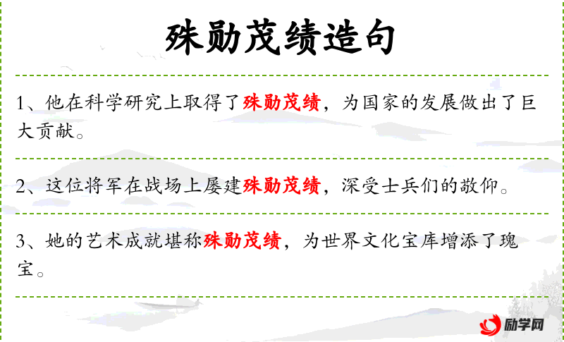5. 【殊勋茂绩】 - 卓越的功勋业绩。