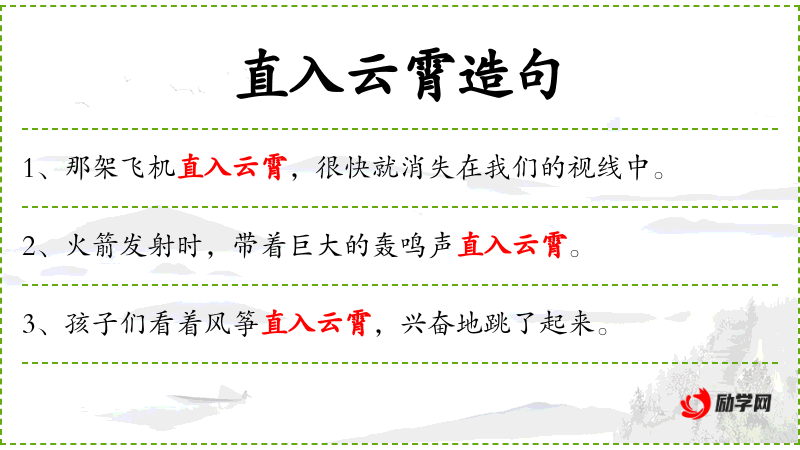 3. 【直入云霄】 - 云霄:指天空。直冲云天。形容歌声高亢嘹亮。