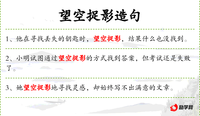 3. 【望空捉影】 犹言捕风捉影。比喻言论行动以似是而非的迹象为依据。