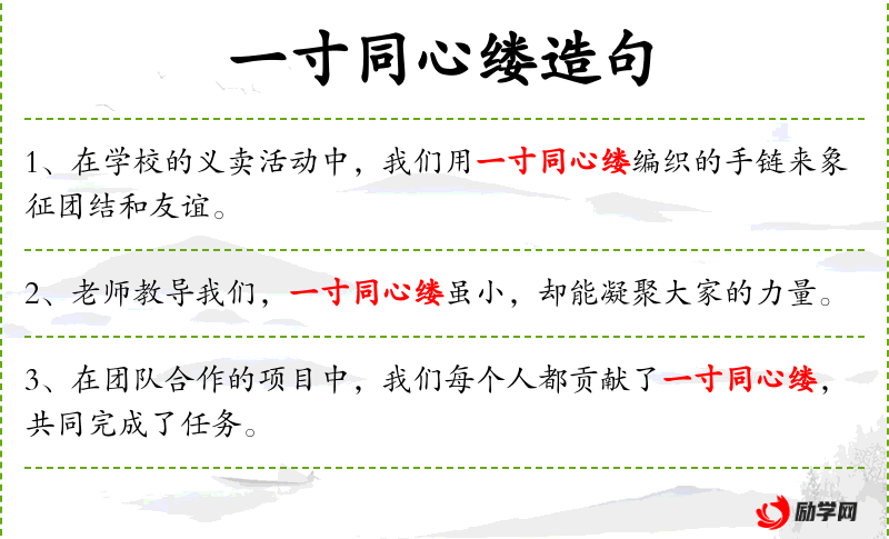 1. 【一寸同心缕】 - 指结线袋子。比喻夫妻和谐。