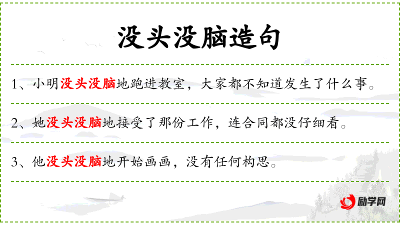 1. 【没头没脑】 - 头、脑:比喻线索或根由。毫无线索或没有根由。