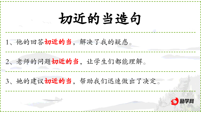 - 切近的当:形容解释非常恰当、合适。