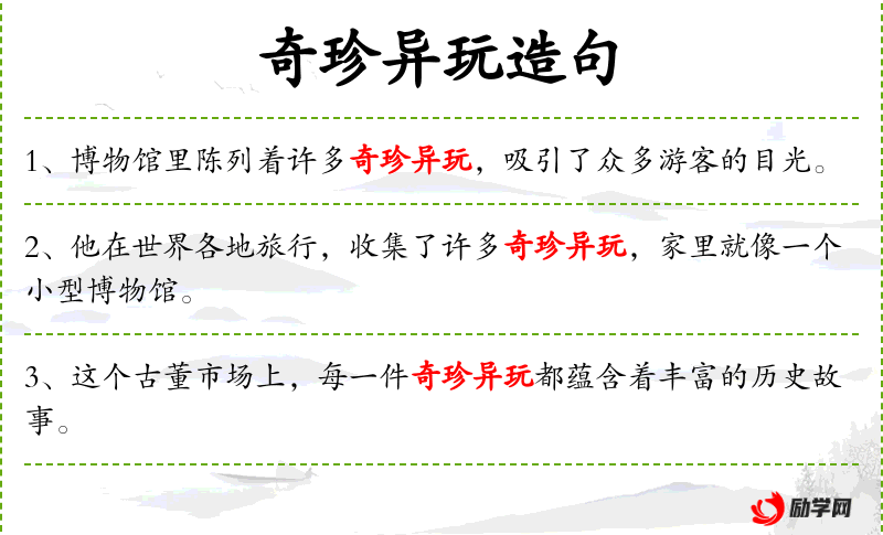- 奇珍异玩:指稀有且珍贵的玩物或收藏品。