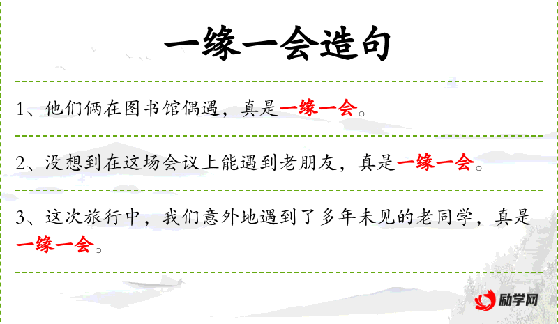 - 真是一缘一会:成语,表示偶然的相遇或机会难得。
