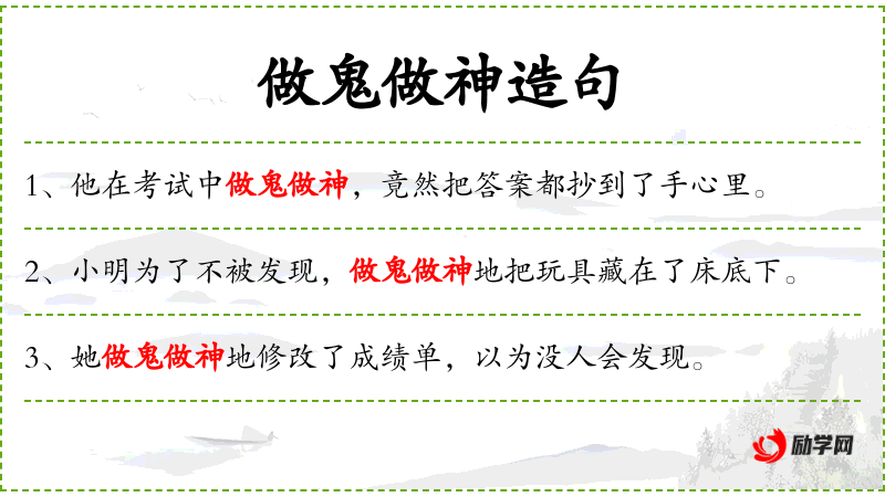- 做鬼做神:这个短语通常用来形容某人在某种场合下装神弄鬼,试图迷惑他人或掩盖真相。